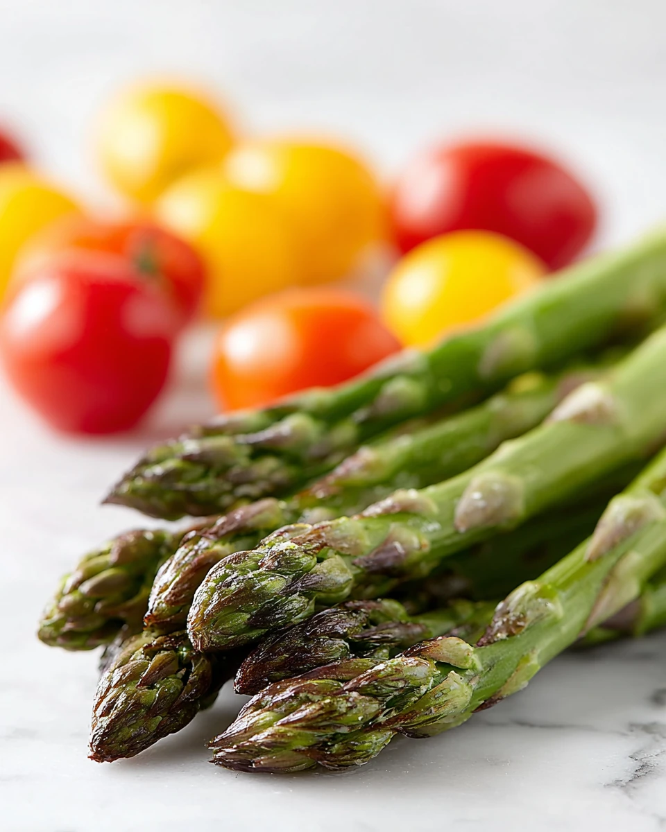 Start by preheating your oven to 350°F (175°C). While it’s heating, chop half of the asparagus, half of the cherry tomatoes, and one small onion into small pieces. This step ensures even cooking and enhances the flavors.