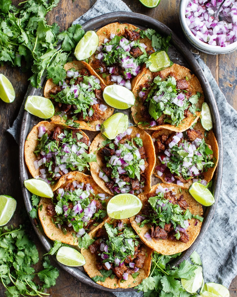 For authentic searing, use a cast iron skillet. Tacos can be served on two tortillas for added support, and common toppings include diced onion, cilantro, and salsa.