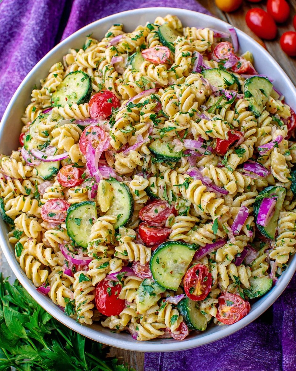 Creamy Tomato Cucumber Pasta Salad