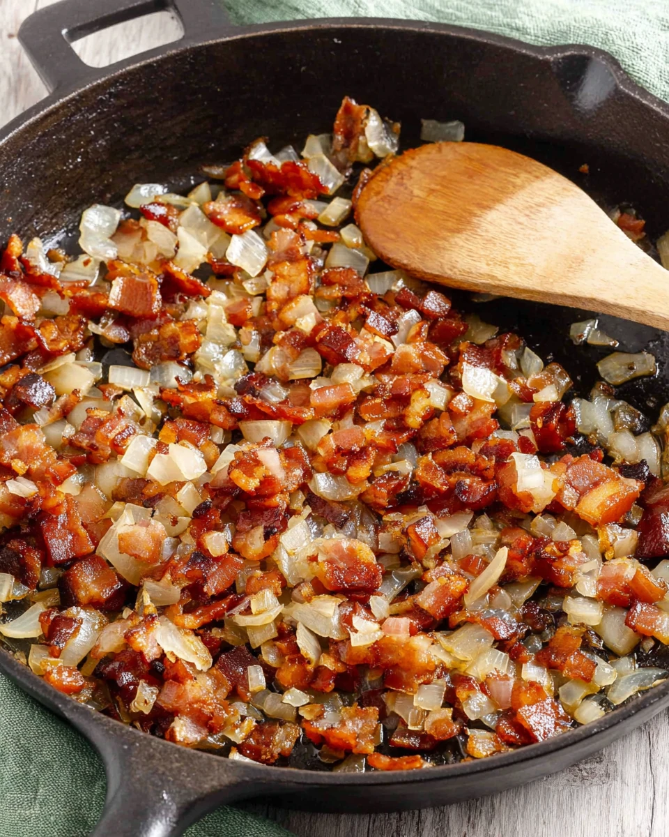 If you prefer a vegetarian version, simply omit the bacon. Sauté the onions in butter or oil to keep everything rich and flavorful.