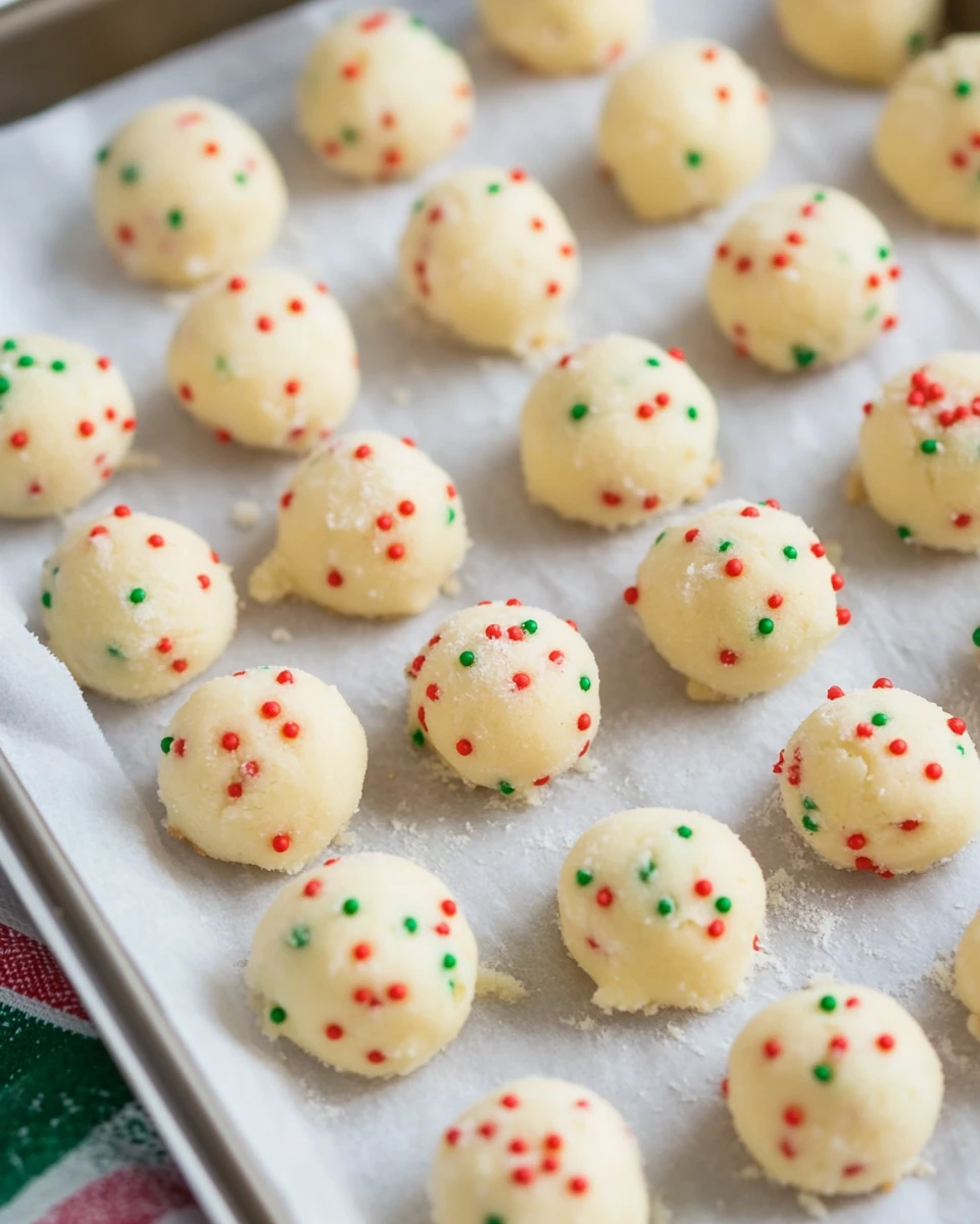 Sugar Cookie Cheesecake cookie dough balls ready for baking.